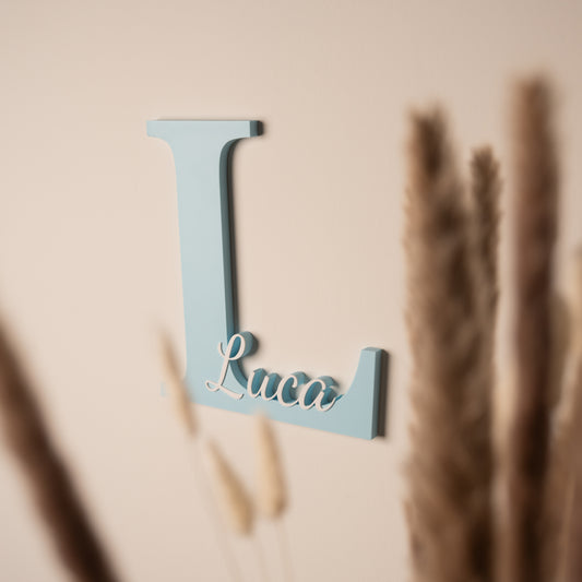 Naambordje kinderkamer - Mat Baby Blauw/Wit