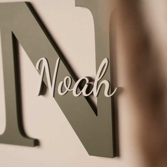 Naambordje kinderkamer - Mat Olijfgroen/Wit