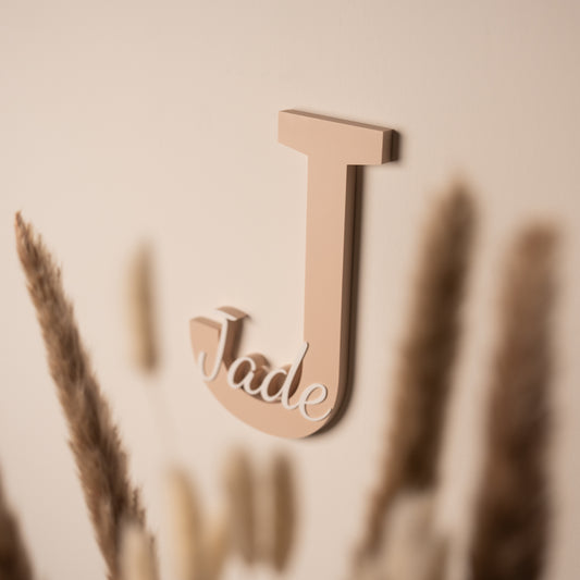 Naambordje kinderkamer - Mat Beige/Wit